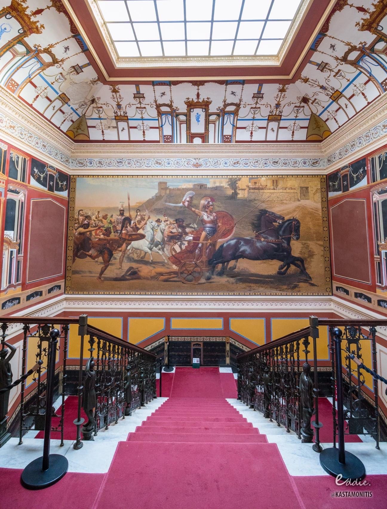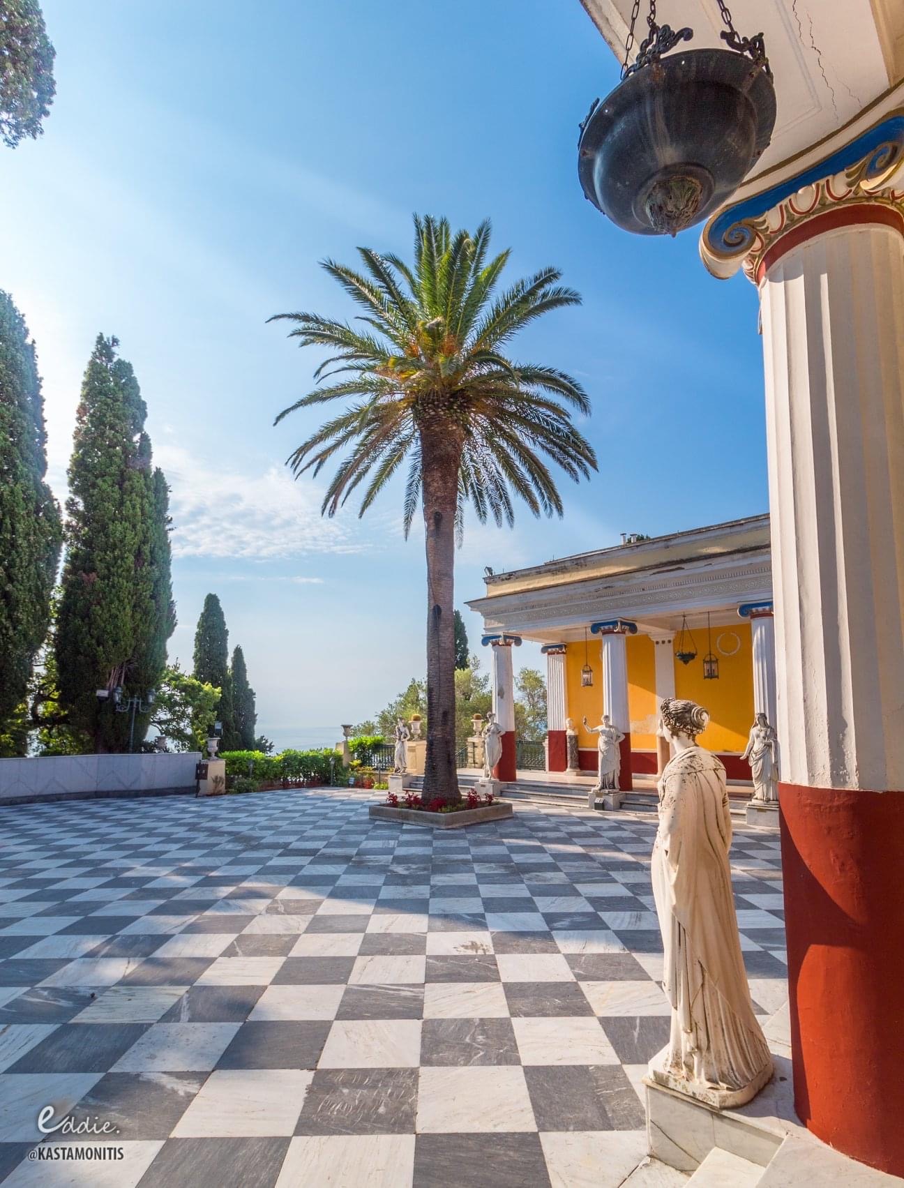 Роскошные залы в неоклассическом стиле, скульптуры древнегреческих богов, фрески и мраморные лестницы создают атмосферу прошлого, наполненную романтикой и тайнами. Особенно впечатляет статуя «Умирающий Ахиллес» в саду с видом на море и город Корфу.